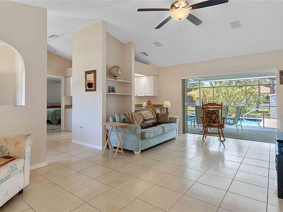 Are you looking for an East Englewood pool home with public water? This two bedroom, two bath split plan sits on a double lot and is in an excellent location. There are no deedrestrictions, so you have plenty of room to build that detached garage or take advantage of the culvert/driveway apron to park theRV! The kitchen has been updated with white cabinets, stainless steel appliances, new disposal, and granite countertops. A pass through breakfast bar opens to the living room, which has a vaulted ceiling and some built-in shelving. The master bedroom has a walk-incloset, plantation shutters, and an updated master bathroom including a granite countertop. The laundry area is conveniently located in the master bath, in its own utility room with a shelf. The split plan allows for plenty of privacy, and the second bedroom has an updated bathroom also. A triple pocket slider leads out to a spacious and inviting pool area, which measures a total of 50'x19' including the covered patio. There is an extra concrete pad outside of the pool cage area, with a convenient outdoor shower.The back yard has a very nice 12'x8' shed with an oversized door for extra storage.