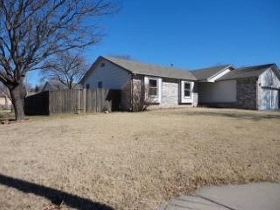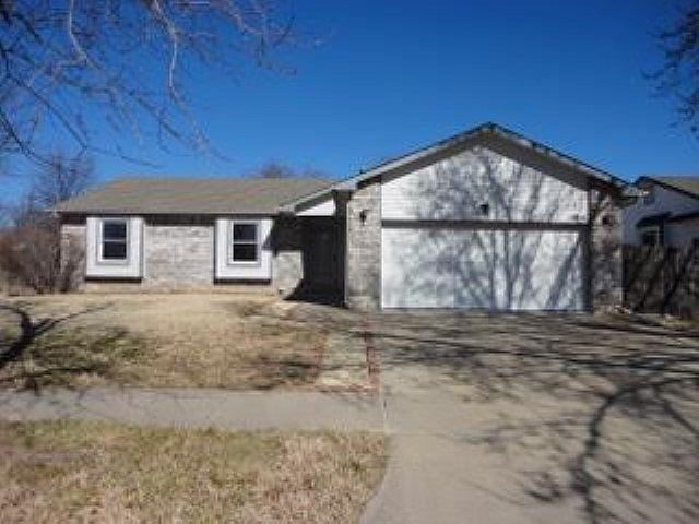 Brick ranch with covered deck off of the dining area, then extends uncovered through the back side of the house, to the master bedroom. Sliders from master to deck. Master has a bathroom with 2 sinks and a shower. 2 fireplaces, in living room and rec/family room in basement. Wet bar in basement has room for full size refrigerator. Neutral decor. Kitchen appliances remain. Washer and dryer between kitchen and garage. 2 car attached garage. Corner lot. Fenced yard. Maize Schools.