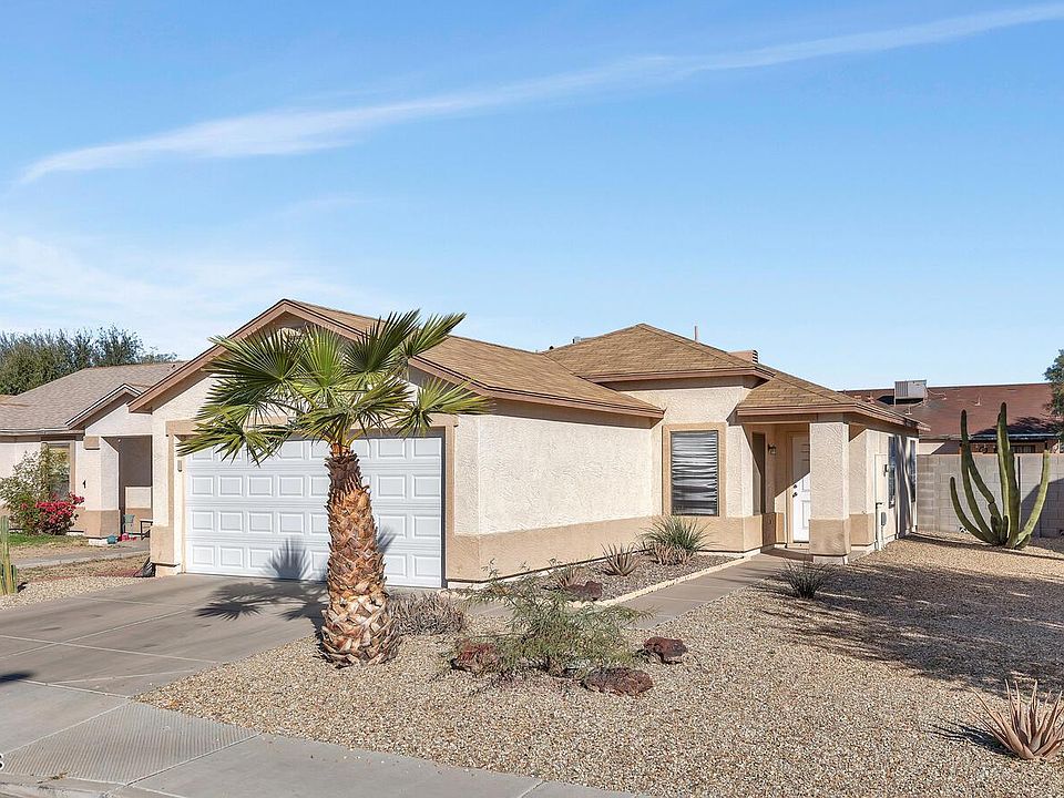 Completely move in ready home in the heart of El Mirage! Great open floor plan concept with this 2 bedroom 2 bathroom home that shows pride of ownership throughout! Eat-in kitchen with white appliances and plenty of cabinets. This home features a spacious great room and kitchen layout, updated bathrooms, low maintenance landscaped backyard with raised planters along the back fence, and only steps away from the community park. Hurry this one is priced well & going to move fast!