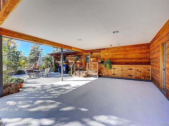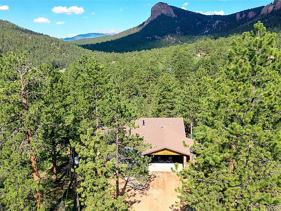 AMAZING VALUE ~ $795,000! Peaceful Private Paradise in Elk Falls Ranch, Pine, a mountain sanctuary with VIEWS! Come make this fantastic updated 4 bedroom mountain home yours! With spectacular unobstructed views of Lions Head rock and 1.64 beautiful acres of quiet mountain living with your own majestic forest and abundant outdoor living space you'll never want to leave. The front entrance patio welcomes you with soothing cascading waters of the unique melodic rock garden fountain with waterfalls ~ a focal point of this home's peaceful outdoor living. Here's where gathering, grilling, sunning and lots of fun happen. Main level living in this solid, immaculate 2,714 sf ranch includes a fabulous well appointed chef's kitchen with new stainless steel appliances ~ double oven w/convection, refrigerator, dishwasher, microwave, gas stovetop, large island, plus a generous walk-in pantry. The charming formal dining room is window-filled and conveniently adjacent to the kitchen ~ with access to the private wrap-around deck, allowing inside/outside entertaining. The large master bedroom includes a great forest view, with peace, quiet and lots of wildlife viewing. An additional bedroom, full bathroom, and a beautiful view-filled living room with a fabulous wood fireplace complete this level. The spacious lower level boasts 2 bedrooms, a large family room + separate exterior entrance, a 3/4 bath, a bright light-filled office or flex space, and laundry room. Enjoy lounging on the lower level patio that runs the length of the house ~ another magical private quiet space. Brand NEW septic system too! Just install a stove and this home's lower level could be a separate living space for family or rental income. 2 vehicle carport with attached workshop completes the property. CLOSE in location can't be beat ~ 3 minutes to Staunton State Park, 5 mins to Hwy 285, 10 mins to Aspen Park, 35 mins to metro Denver! Buyer to verify all information. Extra added comfort with a home warranty!