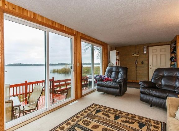 Updates include new siding, roof, windows, completely remodeled bath, patio doors and front door. Also there is a new interior doors, trim and kitchen floor. You and your guest will enjoy the sandy beach and nearby snowmobile paths that can be accessed right form your front door without having to trailer your toys to the paths. Access to three lakes w/roughly 1500 acres of water way (Chisago and both N & S Lindstrom). Seasonal or year round use. Huge views of lake through patio doors.