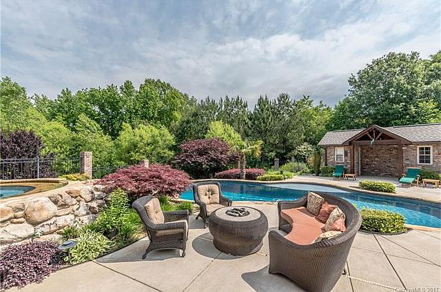 Back on market due to buyer illness. Incomparable brick 4/4 executive home in quiet Churchfield enclave in South Ballantyne with gorgeous dark hardwoods up and down. Owners retreat on main with luxury bath and custom closets. Granite/stainless kitchen with island cooktop, sunny b/fast nook overlooking serene oasis rear yard with Spa, Cascading Waterfall into Blue Lagoon pool. Covered outdoor kitchen/bar. Office w/built-ins. Brick Pool house has full bath & air cond. Motivated seller