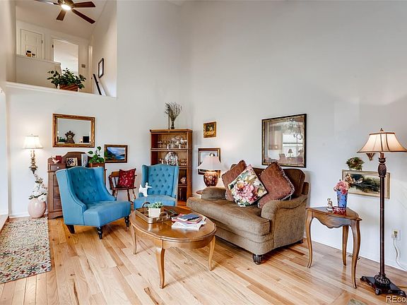 This charming end-unit town home offers all the space you need with maintenance free living in beautiful Ken Caryl! With 4 total bedrooms, a finished basement, upgraded kitchen, neutral colors throughout, attached garage and a private front patio - all it is missing is you! The open floor-plan greets you with natural light and hardwood floors through-out the entire home! The main level features a cozy living room with gas fireplace, dining room with built-in buffet and updated kitchen with granite countertops! Upstairs, which also has hardwood floors, features 3 bedrooms including the master bedroom with adjoining bathroom. In addition to air-conditioning, this home features an attic fan as well! Don't forget about the basement - finished with new wood laminate flooring and featuring a den, bedroom and 3/4 bathroom - plus some unfinished space for storage! This town home has it all - 2 car attached garage, corner unit, adjacent to lush grass open space, private fenced patio, maintenance free and all the charm and amenities that Ken Caryl Ranch has to offer!