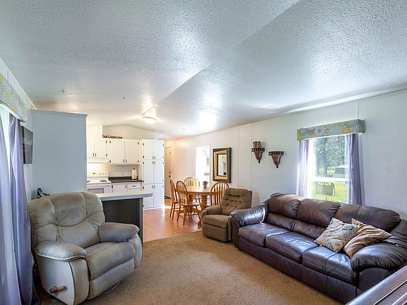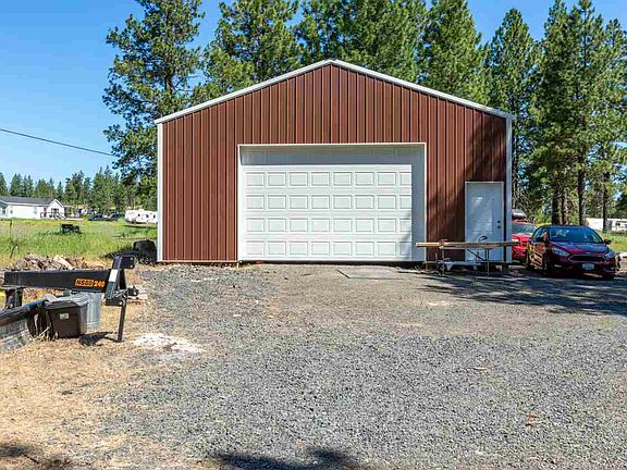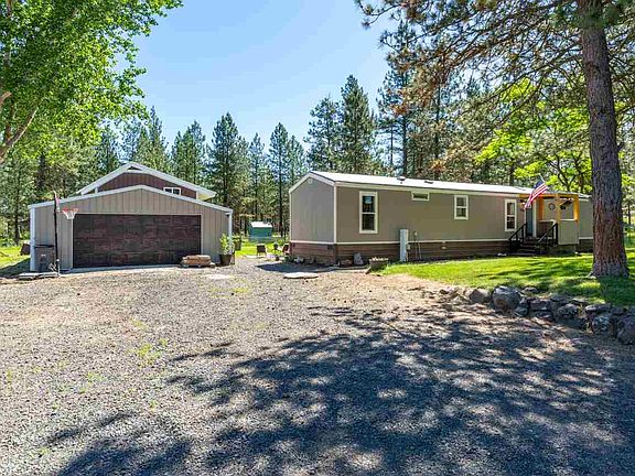 This acreage has more than a 3bd/2ba manufactured home, it also has a workshop with additional office space, bathroom and canning kitchen. Currently being used as sleeping quarters too. Work space is separately wired for tools. Enjoy country living with a 35x30 shop for vehicles and projects, storage shed, chicken coop. Plenty of room for family & animals. Fenced yard, grassy and treed with garden areas. Gated entry to the yard. Gushing well. Close to Spokane and Fairchild AFB.