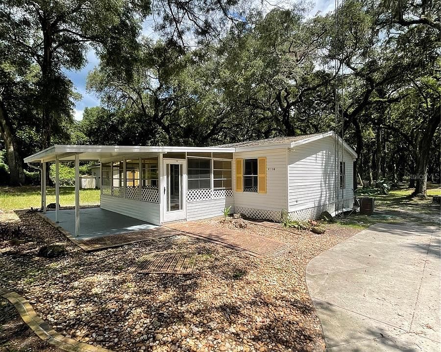 Looking for peace & quiet? Located near SR 200, this property sits on a beautiful 1.25 acres with scattered large oak trees throughout. Updated & Move-in ready! New floors, New kitchen with stainless steel appliances & updated bathrooms. Laundry area just off kitchen. New Hot Water Heater, New HVAC, Septic pumped 9/2021. Tiled front covered lanai. Zoned A1 so bring the farm animals. Detached 1 car garage perfect as a workshop or just about anything, complete with electric, rollup door & double glass doors. Room to roam & close to town.