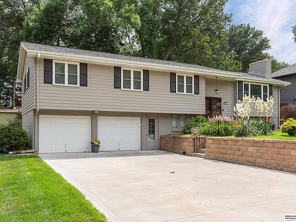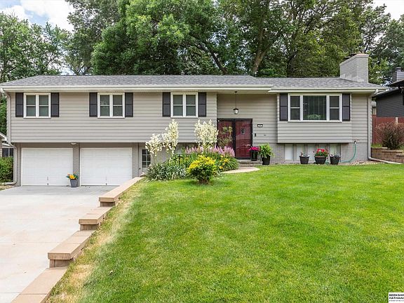 Welcome to this beautiful 4-bedroom home in the heart of Omaha's desirable Skylark-Cryer neighborhood, lovingly maintained by the same owner for 25 years. A double-door entry opens to a spacious foyer and leads to the main floor's open layout with vaulted, painted wood ceilings and a striking wood-burning fireplace. Extensive chimney work ensures confident use. Gleaming solid wood floors flow through the living and dining rooms and all bedrooms. Built-in cabinetry in the living room offers storage and display, including a center cabinet. The formal dining area features additional built-ins for your festive service. The large, open kitchen boasts abundant countertops, a generous island, pantry, and clever storage for baking sheets, boards, and food items. Just off the kitchen is a 225 sq. ft. 3+ season room with a direct vent gas fireplace, perfect for summer dinners or cozy autumn evenings.