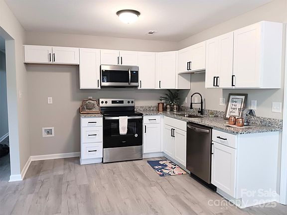 DON'T MISS THIS ONE. " A BRAND NEW KITCHEN ". Rehab Includes NEW: Kitchen Cabinets with the Soft Close Feature, SS Appliances, 9" Undermount Sink, Granite Countertops, Upgraded Luxury Vinyl Plank Flooring (No Carpet), Shower/Sliding Door, Bath Tub/Sliding Door, Vanities, Designer Faucets, Mirrors, Remote Controlled Ceiling Fans, Lighting, etc. Also: New Heat Pump System, Hot Water Heater, Vinyl Siding, 6" Commercial Gutters, Architectural Roof, Exterior Doors, Hand Built Shutters. Fresh Paint Inside. Quite a Build Sheet..!! Too Much to List. Award Winning Schools. The School District listed as Ballantyne Ridge does not have a Senior Class of 2025. The School Zone for Seniors will be South Mecklenburg. No steps to climb. Move In Ready..!! Pet Friendly. With most everything New this should be somewhat maintenance free.