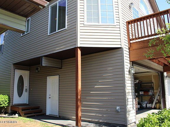 Townhome style condo w/ vaulted ceilings, southern exposure & backs to Eagle River park. Master suite has huge jetted tub, double vanities & separate shower. Kitchen has updated appliances, cabinetry & built in desk. Gas Fireplace, deck w/ amazing sun exposure & views! Could be made into a 3 bedroom easily - laundry in unit not garage & beautiful upgrades galore! Excellent location in complex.