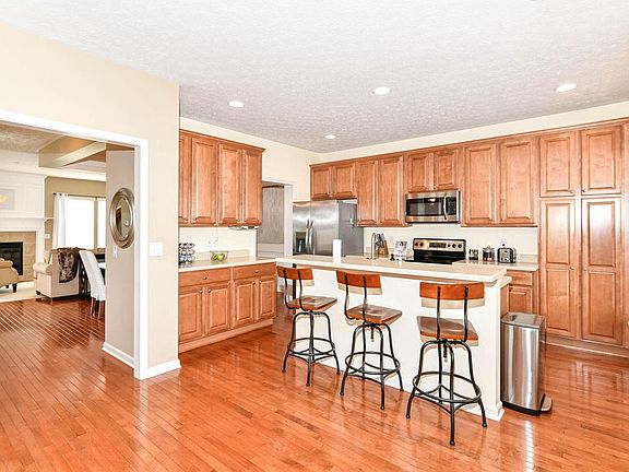 Don't miss this amazing condo in sought after Townhomes of Guilford. Spacious open floor plan with lots of windows and light! Large combo family room/dining room with statement gas fireplace and sliding glass doors that have an amazing view over the pond and fountain. Bright airy kitchen with custom cabinets and stainless steel appliances. Great three person breakfast bar. Three large bedrooms upstairs with 2 full baths. Large lower level that is plumbed for a full bath. Very well cared for home that is move in ready! Close to restaurants, shops and easy access to 465! New Water heater 2019, Refrigerator and Microwave 2022,