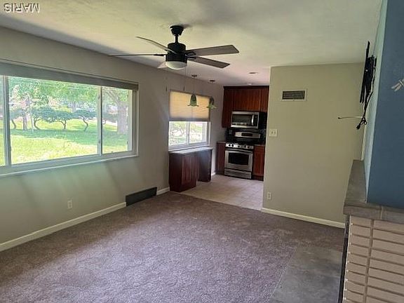 Fresh new carpeting throughout the main living spaces. The spacious layout includes multiple living areas, a well-equipped kitchen, and plenty of natural light throughout.