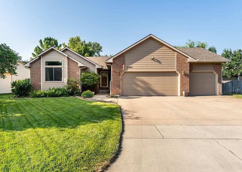 Welcome home to this move-in ready NW Wichita ranch with 4 beds, 3 baths and a 3 car garage in the coveted Maize school district. The main floor of this home is bright and airy with vaulted ceilings, plenty of natural light, and an open-concept floor plan. The large kitchen features tile flooring, neutral countertops and backsplash, ample counter and cabinet space, an eating bar and a reach-in pantry for storing all of those extra kitchen gadgets and/or staple items. With the dining area right off of the kitchen and adjacent to the living room, it makes it easy to gather and entertain all in one place. Down the hall, you will find that the master bedroom suite provides plenty of privacy as it is separated from the other two main floor bedrooms by the full guest bathroom. The master bedroom also boasts vaulted ceilings, an abundance of natural light from the large windows, a walk-in closet and a full en-suite bathroom complete with tile floors, double sink vanity, tons of storage space and an extra large walk-in shower. Rounding out the main floor, you will find the laundry conveniently located just outside all of the main floor bedrooms in its own separate room off the hallway. Downstairs is another great spot for entertaining with a huge rec room that is large enough for tons of seating for game day or movie night, space for a pool/game table with even more room for storing toys, exercise equipment or workspace. The fourth bedroom is also located in the basement with a gigantic walk-in closet and the third full bathroom right outside the door. There is plenty of storage space in the basement with a closet underneath the stairs and tons of designated storage in the mechanical room. If you prefer to entertain outdoors, the backyard is also equipped with a huge covered deck with dual ceiling fans, a concrete patio off the door from the garage, as well as a paver patio that makes a great spot for a firepit. Other exterior amenities include a 6 ft privacy fence, an in-ground sprinkler system on an irrigation well, a storage shed and a fully-concreted third car driveway approach for extra off-street parking. The exterior was just painted a few years ago and all main floor windows (with exception to the master bedroom) were replaced in 2020. This house is located within minutes of groceries, restaurants, shopping, New Market Square and the Northwest YMCA. It is completely move-in ready and just waiting for its new owner. Showings to start on Friday, 8/20 at 4pm.