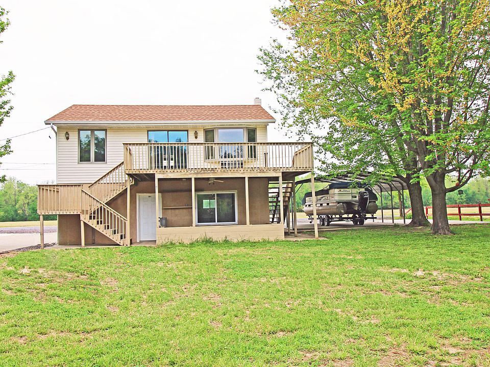 This charming riverfront home is just 15 minutes to Jeff City and adjacent to 1,000 acres of conversation land. It's hard to beat the gorgeous views from almost every room in the house. The open design is ideal for entertaining or use the huge deck for larger gatherings. The fully applianced kitchen with breakfast bar will make the cook happy and even the main level washer/dryer will stay.The spacious garage has a wood stove that keeps things toasty on cool nights, a full bath, tons of room for storage and space for rainy day hang out. This is an exceptional lot with a considerable amount of effort was spent on the river wall and leveling the yard. There's plenty of parking, 24 x 25 carport for boat/camper and the boat ramp is just a few lots down. This unique property will not last long!