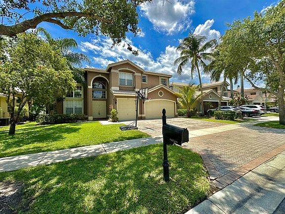 Beautiful updated 5 bedrooms, 3 full baths and 3 car-garage. Located in the most desired Saturnia, a manned-gated community. 2-story home with over 4,000 Sq Ft. 1st fl: Open high vaulted ceilings, Living Room, Dining Room and large updated Kitchen, SS appliances, double oven, Family Room, Guest Bedroom and a full bath. 2nd fl: Specious main bedroom with 2 walk-in closets, 3 additional bedrooms, loft area and a full bath. Porcelain floors throughout 1st fl, Hardwood on 2nd fl. House equipped with Hurricane Accordion Shutters, Newer 2-zone A/Cs. Custom closets cabinetry in bedrooms, large fenced-in backyard. Saturnia's amenities include heated pool, hot-tub, clubhouse, fitness room, basketball ct & playground. High-Speed Internet + TV + Landscaping Inc. in rent. ''A'' Rated schools.