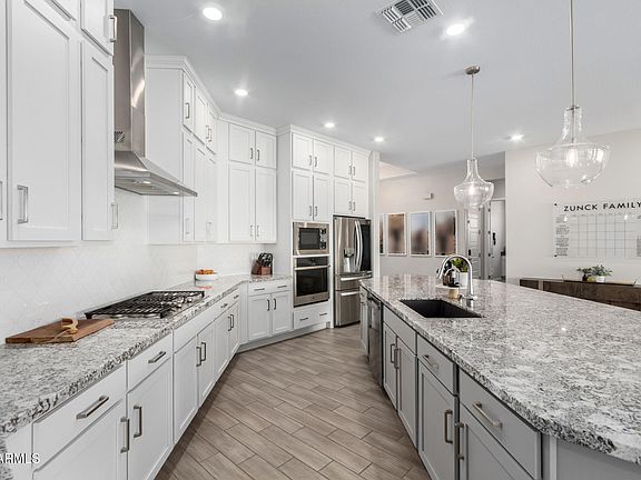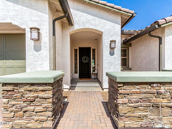 Motivated Seller, bring your offers! This stunning David Weekley home boasts an open floor plan with soaring ceilings, elegant plank tile flooring and expansive sliding glass doors leading to a covered patio for seamless indoor-outdoor living. The chef's kitchen is highlighted by an oversized granite island, gas cooktop, floor to ceiling cabinetry, premium stainless steel appliances, pull out drawers, coffee bar, and custom cabinets in the enormous pantry. The primary bedroom offers a walk-in shower, the 2nd and 3rd bedrooms were extended and measure over 14X14 ft each with their own attached full bath!! WOW. It's like having 3 master bedrooms. Custom backyard landscaping w/ impressive built-in fireplace, plus 4 car garage and a paver driveway. Seller will contribute toward rate buydown.