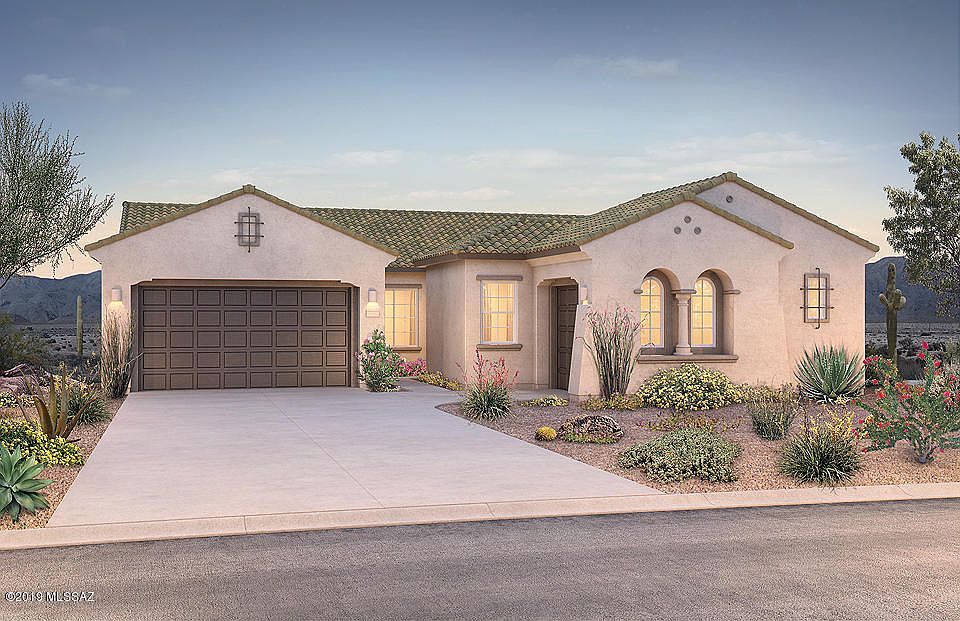 One of the most popular plans on a premium lot backing the southeast expansive common area with view fencing and Catalina Mountains as your backdrop-last one left. This desirable Catalina plan at Tangerine Ridge's gated all single-story community is located near Twin Peaks & Tangerine Rd. features luxurious glass walk in shower at the master bath, oversized covered patio, fire suppression system, white linen cabinets throughout with Azul Platino granite countertops, 2 tone grey paint, gas stainless steel gourmet appliances, huge walk in closet at master bedroom. The flooring throughout is 12''x24'' tile in all areas except bedrooms. Other upgrades include paver driveway and courtyard, chef kitchen, custom kitchen back splash, brushed nickel finishes, granite sink and electrical upgrades.