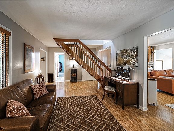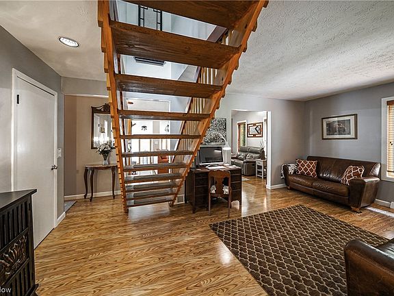 Beautiful home for sale on a very private lot in Hiram! So many great features in this house! The driveway is 400 feet long, making this your own private oasis. After a long day, pull your car right into the garage, which is accessed from the first floor(perfect for Ohio winters). The first floor features one of the three bedrooms in the residence and a first floor laundry–no more heading for the basement on laundry day. Upstairs there are two additional bedrooms with great views, and an additional bathroom. The kitchen and dining area have high, vaulted ceilings, perfect for entertaining guests, as well as a stylish, one-of-a-kind look. The spacious kitchen, with a breakfast nook ideal for enjoying your morning coffee, offers an abundance of natural light–perfect for a well-lit office or play space. Off the dining room, the deck would be great for intimate gatherings with friends. The backyard has trails offering privacy and the personal Zen to enjoy nature… or a bonfire & s’mor