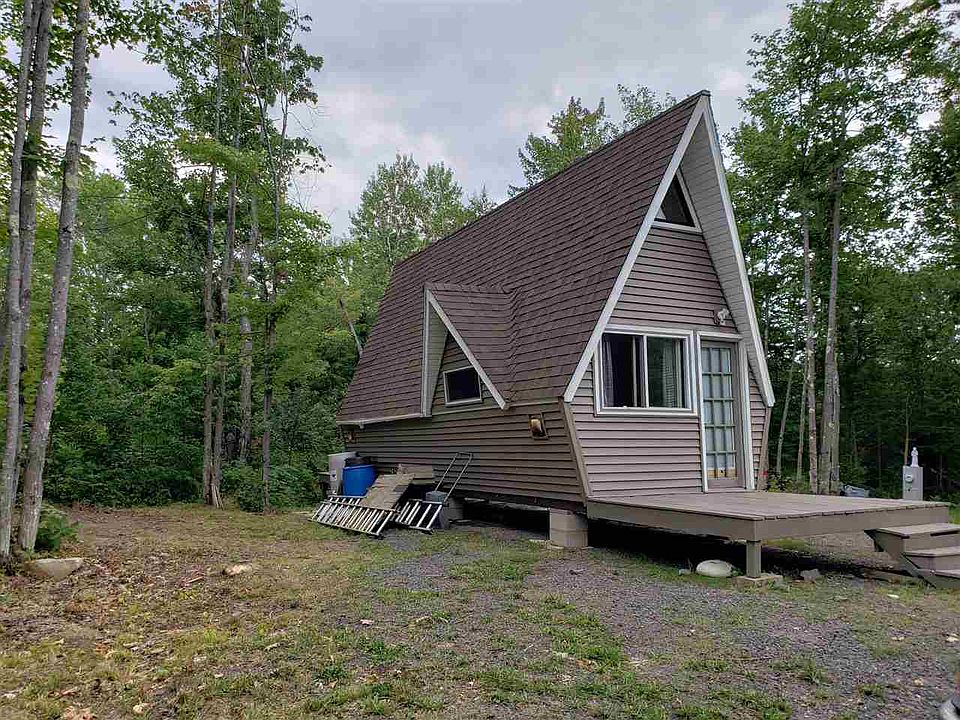 Cozy A-frame located on 3.67 acres. Perfect for your get-a-away! Downstairs has a living room, kitchen and bathroom. The upper level is a loft with a bedroom. This cabin is equipped with power, the water supply is rainwater stored in barrels and distributed by a battery operated water pump and it has a compost toilet. Almost a tiny house, almost living off the grid and almost living on the water. This cabin is very close to the Gile Flowage. Enjoy the water without waterfront prices.