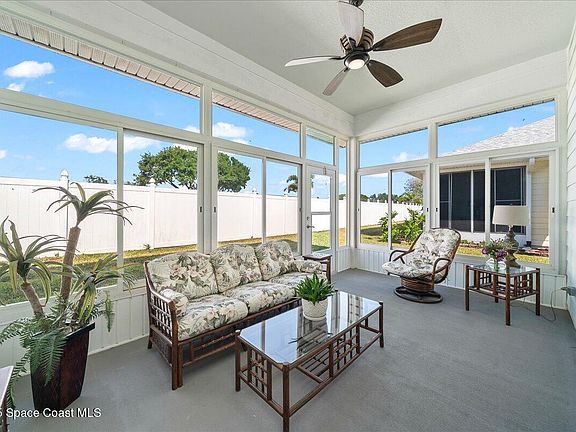 Located in the gated community of Bimini Bay, this 2-bedroom, 2-bath home brings a touch of the Bahamas right to Palm Bay. Built with solid concrete block construction, it features a brand-new roof (2023) and shutters for every opening. Inside, recent updates include a new electric range, convection oven, and microwave, along with fresh fixtures and paint. The split floor plan, wood and tile flooring, and a glass-enclosed rear porch create a bright, inviting space. A whole-house air purifier adds extra comfort.