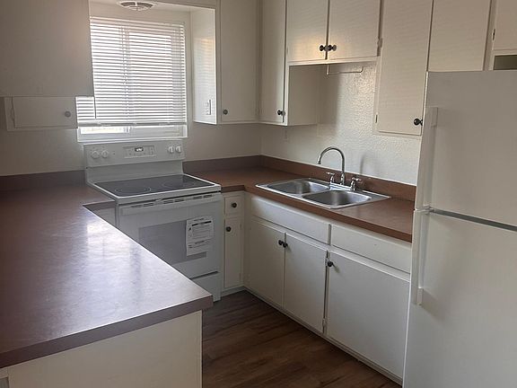 Spacious 2 story 2 Bedroom, 1 1/2 Bath Townhouse style 4 plex Large windows allow natural light to come in Kitchen has a newer stove and refrigerator Large pantry/closet with mirrored doors Neutral wood laminate 1st level Master bedroom upstairs has nice sized balcony Both bedrooms have mirrored closet doors 2 assigned off street parking spaces Laundry room on site Close to public transportation Owner pays for water, sewer and trash No smoking property Additional $50.00 pet rent