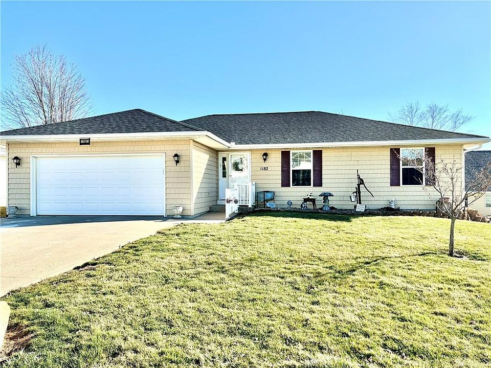 Move in ready one level maintenance free ranch home. Total of 3 bedrooms and 2 full baths. Home is bright and airy with large open floor plan. Kitchen has tons of cabinets and large island. Fresh interior paint throughout home. New carpet in bedrooms. Laundry on main floor. Basement has lots space and could be easily finished. Located in a nice neighborhood close to the golf course and University.