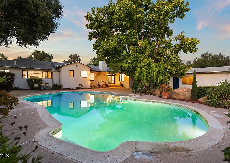 Escape to your own tranquil haven in this mid-century ranch-style home that blends rustic character with comfort. Set on nearly 0.37 acres, 1182 Lake Avenue invites you to unwind and entertain with gracious single-story living including 4 possible bedrooms + 2.5 baths, and more than 2,100 sq ft of open, airy spaces. (2 bedrooms have closets) The west wing of house can easily serve as separate living quarters with a large living space, half bathroom, and 2 rooms. The heart of the home is the country kitchen with sunny breakfast area, opening to family and dining rooms ideal for morning light or evening gatherings by the wood-fire fireplace. Newer roof, electrical panel & recent cosmetic updates. Outside, enjoy a lush mini orchard, flourishing gardens, and an in-ground pool & spa for year-round relaxation. Practical-minded extras include RV-friendly stamped driveway, deep two-car garage with workspace, and abundant parking. Located in the friendly, picturesque Mira Monte area, this home gives you the balance of peaceful rural charm and easy access to Ojai's shops, Ventura & Santa Barbara, and natural escapes like Lake Casitas. Your retreat begins here. Cameras with audio at property. Please do not go direct.