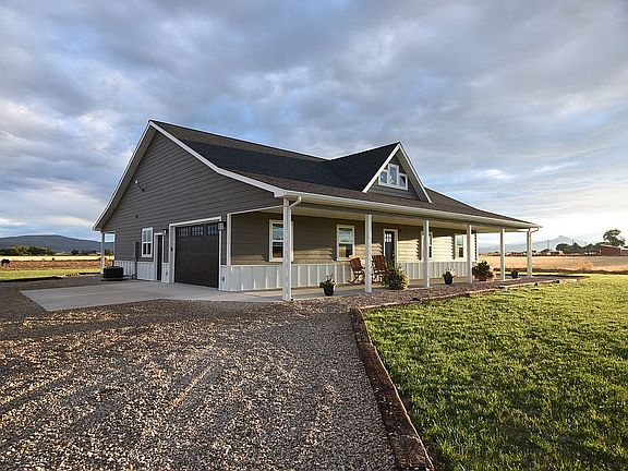 Here's your opportunity to have a quiet country horse property close to town. Enjoy all the sunrises and/or sunsets you want from your full-length front and back porches. Beautiful new single level home has three bedrooms, all with walk in closets and two full baths. The master bath boasts a custom tiled shower and giant soaker tub, quartz countertops and accents!! The bedrooms are carpeted, the master bathroom is tiled and the rest of the house has LVT flooring. The large vaulted ceilings in the kitchen and living rooms open the house up beautifully. The custom cabinets provide almost endless storage space and are topped with beautiful quartz countertops. The drive through shop is 36'X36' and has a one bedroom one bathroom apartment including washer and dryer for guests or rental. The home sits on +-3 acres that is landscaped with a large established yard with underground sprinkler system. Approximately 1 acre fenced for livestock, including corral and loafing shed. All kitchen appliances are included, house washer and dryer included, shop washer and dryer are included, yard irrigation pump is included. Seller is willing to pay up to $5000 in buyer agent fees for full price offer. Property is sold as is. Property is for sale by owner, seller is not interested in listing with an Agent