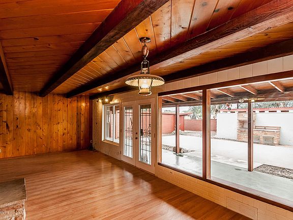 This unique and amazing mid-century home has been kept relatively original and is ready for your Danish modern furniture and your Eames chairs. A full laundry room with rinse sink, beautiful sandstone fireplace and warm wood wall coverings make this property a mid-century gem in the heart of mid-town Tucson. The split bedroom floor plan and large 1/4 acre plus lot make this house very modern and livable by today's standards. From the North yard this house even has a view of the mountains and large spaces for parking or gardening. There is a storage shed, built-in Barbecue, and covered patio, for our outdoor entertaining as well. Come check out this unique property today.