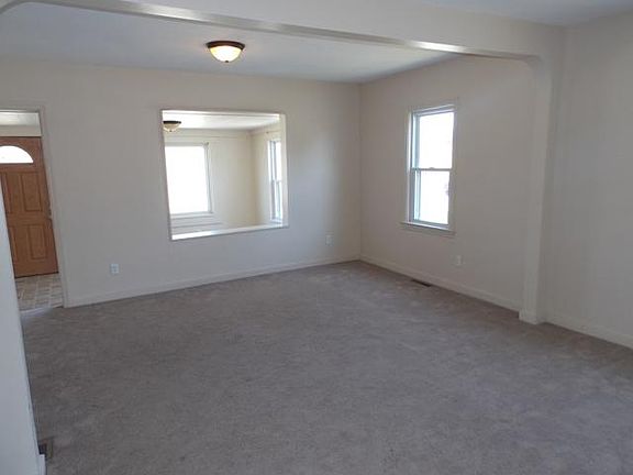 Nice and bright 3 bedroom house with spacious kitchen, living room with bonus space, and large sunroom! 2 bedrooms can be found on first floor with 1 large bedroom found on 2nd floor. Also has full unfinished basement and large 2 car detached garage! Heated with electric, tenant is responsible for all utilities. Lawn care included!