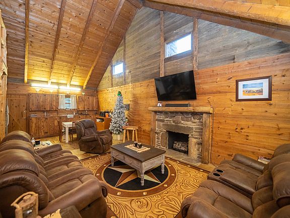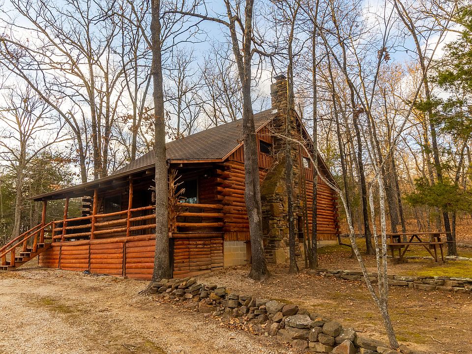 Beautiful one bedroom, one bath log cabin nestled on 2.77 acres. This cabin is complete with open living/dining/kitchen floor plan, plus spacious loft for recreation, office, or additional sleeping space. Interior barn wood and cedar walls highlight the impressive rock gas fireplace. Andersen triple-pane windows, new central heat/ac and 2 backup heat sources guarantee winter comfort. The exterior has fresh stain, new gutters, new roof on back half of house and 600 gallon propane tank. In addition there is a 20x20 shop building with new roof.This property is Secluded, yet not far off pavement and only 15 minutes from town. Don't miss out on this truly original Ozarks cabin!