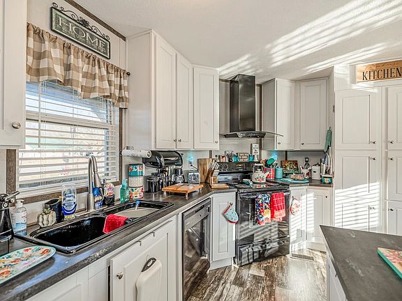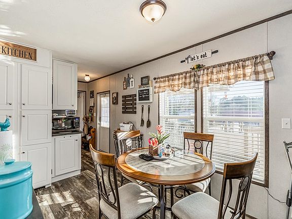 This almost new three bedroom two bath single wide mobile home on just under half an acre is priced for the discerning first time home buyer looking for an affordable home to call their own. The additional porches added to the front and back of the home, make this the perfect home for entertaining friends and family. This home has a cozy feel and it is light and bright. You will love the split floor plan. The laundry room is “hidden” away in the kitchen pantry area. So clever!! The master bedroom is spacious and includes dual sinks in the bathroom, large shower, as well as generously sized bathtub perfect for soaking at the end of the day. The other two bedrooms are a nice size and the additional full bath is nearby. This home is convenient to shopping but away from the hustle and bustle.