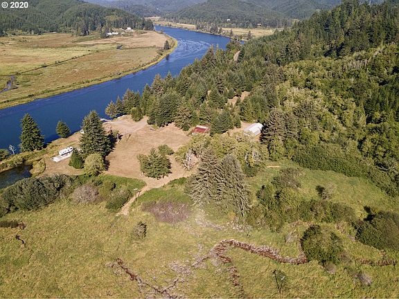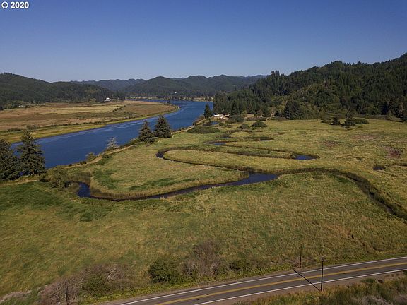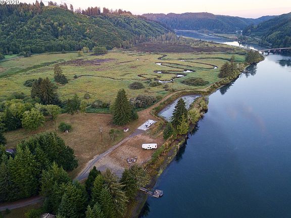 Stunning 80.8 acres with half mile of Smith River frontage! Less than 10 minutes from Reedsport, this one of a kind property has so much to offer. Fish for Striped Bass from your dock. Hunt on your own land. Merchantable timber, pasture, bench, creek, bottom land, pond. Large barn with horse stalls and fenced pasture. Several outbuildings including old manufactured home of little or no value, shop, barn, chicken coup. Septic, well and electricity on property. RV pad with electric hook up.