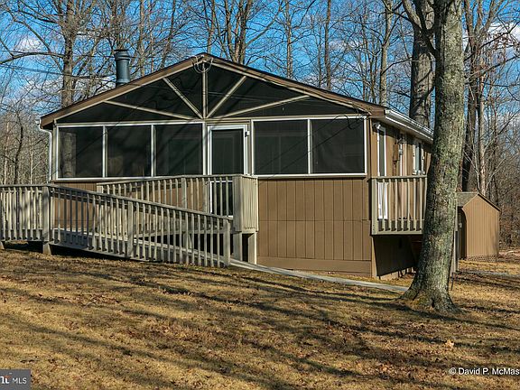 Escape to this cozy yet modern fully furnished cabin, nestled on a serene 0.70 acre lot surrounded by nature. Thoughtfully updated with luxury vinyl plank flooring butcher block countertops, stainless appliances, this retreat blends rustic charm with contemporary comforts. Relax in the inviting living room, or unwind on the screened porch, perfect for enjoying the sights and sounds of the the woods year round. Designed for convenience, the home also accommodates handicap assistance. Outside, you'll find a shed for extra storage and plenty of space to explore and enjoy the great outdoors. Whether you are seeking a weekend getaway or a full-time escape this cabin offer the perfect balance of comfort and nature. This property does not offer membership to all of the amenities. The Golf Course, restaurant, salon and spa are all available for public use. Located just miles away from charming Berkeley Springs!