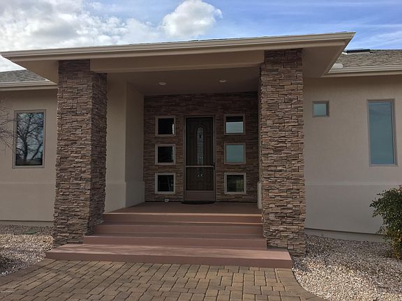 This special 4br Longview Estates home on .6ac in one of Prescott's premier subdivisions, with its circular drive and mountain views is a must see if you are looking for a quality home in a relaxed, country setting. Ideally located close to town, medical offices, golf courses and hiking trails. There is a large but cozy great room with stone fireplace and terrific views. The dining area is surrounded by windows and mountain views. Other features include city water, natural gas, central vac, water purification, recirculating hot water, window treatments, skylight, surround sound, security doors, 3-car garage and a 600 sq ft wrap around ''great for entertaining'' deck with great views, a natural gas connection for your grill, and a remote controlled retractable shade cover.