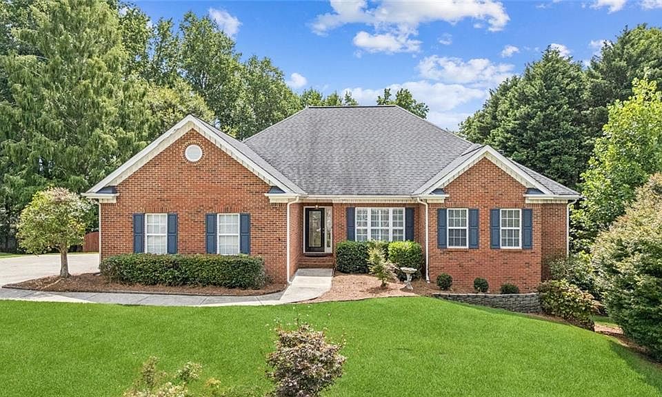 Sought After Ranch on a full basement. Split bedroom floorplan. ¾ of the basement is finished and is an entertainer's dream, complete with LVP flooring, a large rec room with a wet bar that could be converted to a kitchenette, and a full bath. A private bedroom with a huge walk-in closet, two other flex rooms offer versatile space for all your needs. The driveway extends around to the terrace level with a garage door, making the basement perfect for an in-law or college student suite. Two additional large unfinished rooms make all your storage dreams come true with tons of built-in solid shelving. The main level welcomes you with beautiful hardwood floors and an entry foyer. Entertain in style in the formal living room, featuring crown molding, plantation shutters, and recessed lighting, which could also be a home office. The formal dining room, with its chair railing, crown molding, and elegant chandelier, sets the stage for memorable meals and dinner parties. The kitchen is a chef's delight with stainless steel appliances, including a Whirlpool 5-burner gas range/oven and microwave, granite countertops, white cabinets, and a stylish tile backsplash. An undermount sink with new fixtures and a pantry complete this functional space. The breakfast room provides a perfect spot for casual dining. Relax in the family room, where a gas log fireplace with a starter, built-in bookshelves, and a tray ceiling with a fan create a cozy atmosphere. The primary suite on the main level offers a peaceful retreat with a tray ceiling and an ensuite bath featuring a double vanity, a jetted tub, and a walk-in closet with a built-in safe. Two additional bedrooms on the main level, one with a walk-in closet and ensuite access to a bath with a separate wet area, provide comfortable accommodations. Step outside into your own private half-acre retreat! Off the kitchen, a screened-in porch with ceiling fans opens to a deck overlooking a spacious, fenced backyard. Enjoy a sparkling saltwater pool with a cabana, a stone firepit, and plenty of open lawn—perfect for yard games or creating your dream garden. A two-car side-entry garage connects to a mudroom and laundry area with built-in cabinetry for easy organization. This exceptional Hoschton home offers an incredible lifestyle opportunity, conveniently located for shopping, recreation, and just minutes from the renowned Chateau Elan Winery & Resort. Enjoy easy access to local parks like Mulberry Park with a fishing pond, Duncan Creek Park, and Fort Yargo State Park. Charming downtown Hoschton and Braselton area shops, and various dining options. Don't miss your chance to own this magnificent property! INQUIRE ABOUT LENDER CLOSING COST CREDIT AVAILABLE WITH OUR PREFERRED LENDER.
