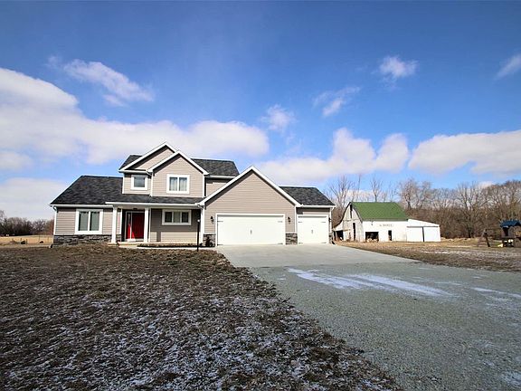 Newer build - 2016. Country feel home, yet close to town. The main floor of this home features a master suite that is separate from the other two bedrooms for that privacy. An open concept to the living room, dining, and kitchen. We mustn't forget to mention on those cold winder days, cozy up to the large fireplace in the living room with that hot chocolate and a good movie. Conveniently placed, a pocket office just off the kitchen area. Main floor laundry too! This home has a full basement (9' ceilings) that is ready to be finished and is partially framed, insulated with a moisture barrier, and electric already ran! Let's talk about the HUGE perk to this home - HEATED 3 car garage, that's hard to find! This home also comes with many of it's WARRANTIES as well! The old barn on this property allows a Heritage Barn credit for property taxes! THIS is a must see. Wont last! (Granite Ridge is the builder of this home)