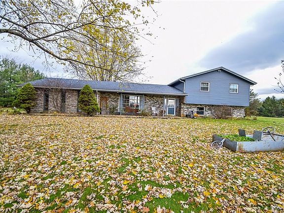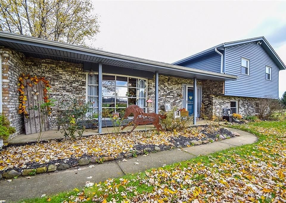 Welcome home to this spacious mini farm! Split level home sits back on 5.3 acres w/a 26 x 40 barn, 3 stalls, loft, tack room w/water & electric. Beside the barn is a 24x40 detached garage. 3 acre pasture in the back is secure w/an electric fence replaced in 2019. Living & dining rooms have new laminate planking, fresh paint & a shiplap accent wall. Kitchen is spacious w/lots of storage & counter space, all appliances stay. Downstairs is a lg family rm w/gas fireplace, utility room, half bath & 4th bedroom. Upstairs you'll find 3 sizable bedrooms, main bathroom, master bedroom & bathroom. Out back is an in ground pool (16X32) w/a new deck area! Updates: heat pump in 2020, 30 yr roof 2013, driveway leveled w/fresh gravel in 2020, windows w/custom trim 2016, laminate planking in basement 2021. Invisible fence surrounds the property, a security system w/cameras & audio in the dining room & kitchen, sensors on 1st level windows & motion detection in basement. All convey w/the property!