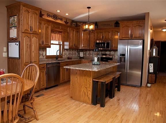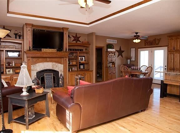 This beautiful ranch home sits on 3.19 acres and is right at the edge of town, close to the hospital and I-35. This home is very warm and perfect for entertaining with it's open floor plan and large finished basement, complete with custom-built wood bar. The living room features a wood-burning fireplace, built-ins, hardwood floors and vaulted ceilings. The kitchen features beautiful oak cabinets, granite counter tops and an island. Master bathroom features walk-in shower, jacuzzi tub & walk-in closet.
