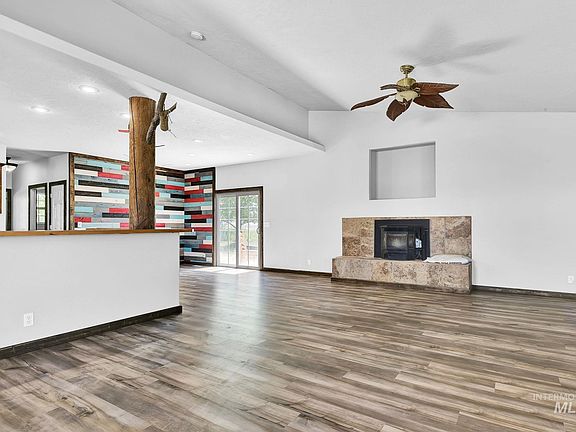 Beautiful acreage estate with stunning views! Appreciate your own 'Private Idaho' on ~40 acres with mature shade trees, private pond, solar panels (owned), and endless colorful views. Newly updated and refreshed, this residence showcases new flooring and vaulted ceilings, while a tile wrapped fireplace anchors the great room. With an abundance of natural light, the rustic kitchen features a large, natural wood column, lovely cabinetry and a charming island overlooking the wonderful dining area. Warm, rich tones continue upstairs where you can find two spacious bedrooms and direct access to the second story deck where stargazing awaits. Welcome home! Includes 2 parcels RP02S04E237810 (34.95 Acres) & RP02S04E238200 (5 Acres)
