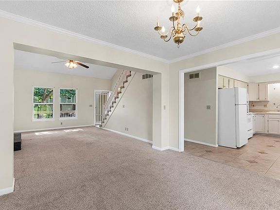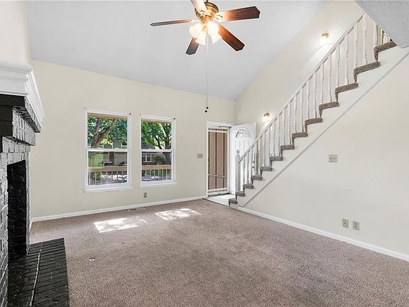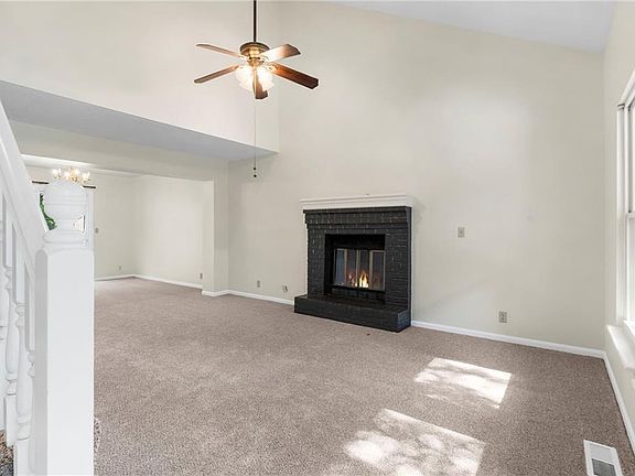 Move right in to this wonderful half duplex! Brand new carpet, interior paint, and roof - all in the past 30 days. As you walk in, the living room welcomes you with a brick fireplace, vaulted ceiling and abundant natural light. The dining room opens to the kitchen which includes the dishwasher, microwave, stove, and refrigerator. The first floor also offers the laundry room and half bathroom. Upstairs, you will appreciate three large bedrooms and two full bathrooms. The basement is unfinished and provides plenty of space for storage. It could easily be finished with a home office or family room if you need more space. Outside, the fenced yard backs to Stoll Park which features a dog park, playground, picnic shelter and trails. The home is conveniently located close to 435 and 69 highway, as well as many shops and restaurants. No HOA fees! Everything has been done for you - just move right in!
