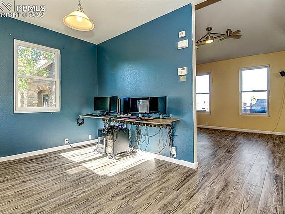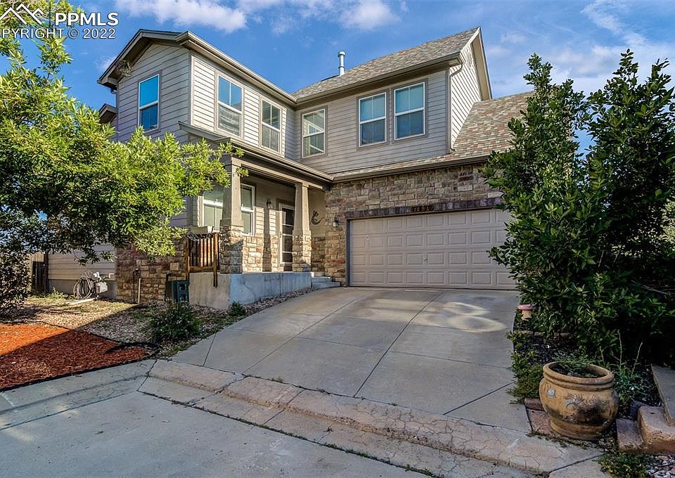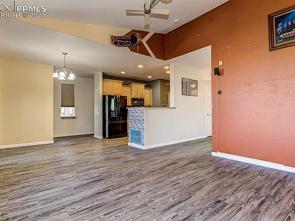Fantastic 3 Bedroom 3 Bathroom 1658 Sq. Foot 2 Story gem tucked away in the COURTYARDS AT WOODMEN HILLS NORTH in Peyton. NEW Roof October of 2020, NEW Flooring November 2020. This property features a charming covered front porch. As you enter in, you will observe an area that is multi functional use, as either a dedicated dining space, or could be used as an open office. The living room is large and illuminated by 2 NEW windows and NEW French Doors that exit out to your expansive back yard and deck with a majestic view of the mountains! The kitchen is very spacious and has plenty of cabinet space for storage, along with a gas range. Upstairs are three bedrooms, and two full bath rooms. This property is very close to schools, parks, and shopping. Truly a must see!