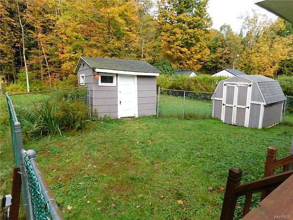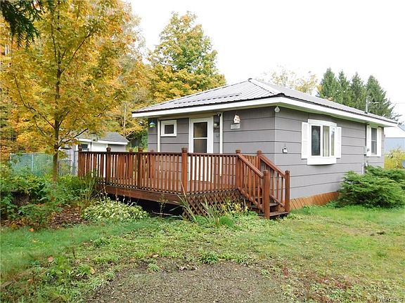 Great get away or year round 1 bedroom 1 bath ranch on almost 1 acre with stream and woods at back of property. Private lot. 2 Sheds and a portion of the yard is fenced. Perfect for your pet. Drilled well was put in 2017!Newer metal roof. Hot water based board heat with boilermate. Combination living room/kitchen has knotty pine walls. A couple bushes will be removed from property. Just a short drive from the 219 Expressway. This affordable home on private treed lot could be yours.