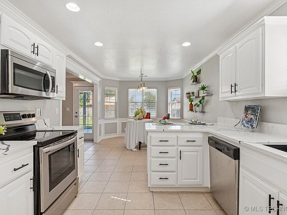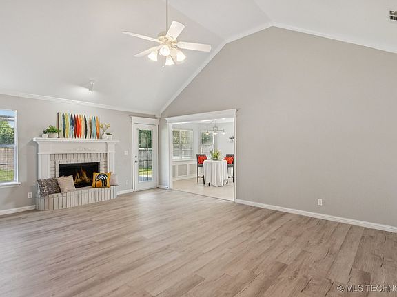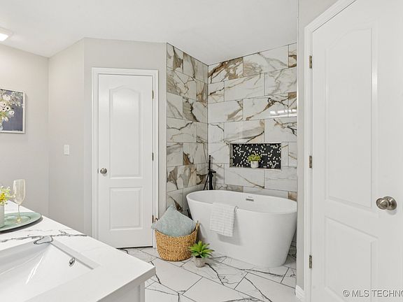 Step into quiet, all new luxury in this top to bottom remodeled home in popular Country Estates in Owasso Schools. The primary bath has a new free-standing soaking tub, new double vanity with granite countertops, gorgeous new tile in the shower and surrounding the tub. The kitchen has all new stainless steel appliances: dishwasher, stove & microwave. All new granite countertops and lighting. The vaulted great room has plenty of space for an over-sized sectional and a giant TV! It also has a gas fireplace for cozy winter nights. Beautiful ceiling treatment in the primary bedroom and two windows. The entire interior and exterior of this all brick home has been freshly painted. All new luxury vinyl, waterproof planking is throughout the home and all new carpeting in the three bedrooms. Both the front and back porch are covered and both have plenty of seating area. Large backyard has good sod, flat yard and 6’ privacy fence all around. Located near “German Corner” the home is very close to Owasso’s favorite recreational park: Fantastic Island and sports fields. This intersection is also home to popular restaurants, hardware & variety stores & churches. The home is just 1-2 miles from Bailey Medical Center, Wal-Mart, Target and the many stores at Smith Farm shopping center. HWY 169 in one mile east and HWY 75 is four miles west. Owasso is a quiet, desirable community offering a Main Street USA downtown with an amphitheater and on-going festivals and farmer’s markets. Tulsa International Airport is 8 miles away. Downtown Tulsa is 17 miles away. Schedule your appointment to see this lovely, truly move-in ready home.
