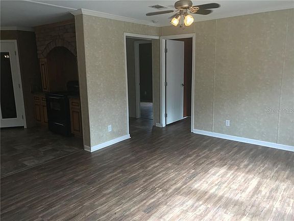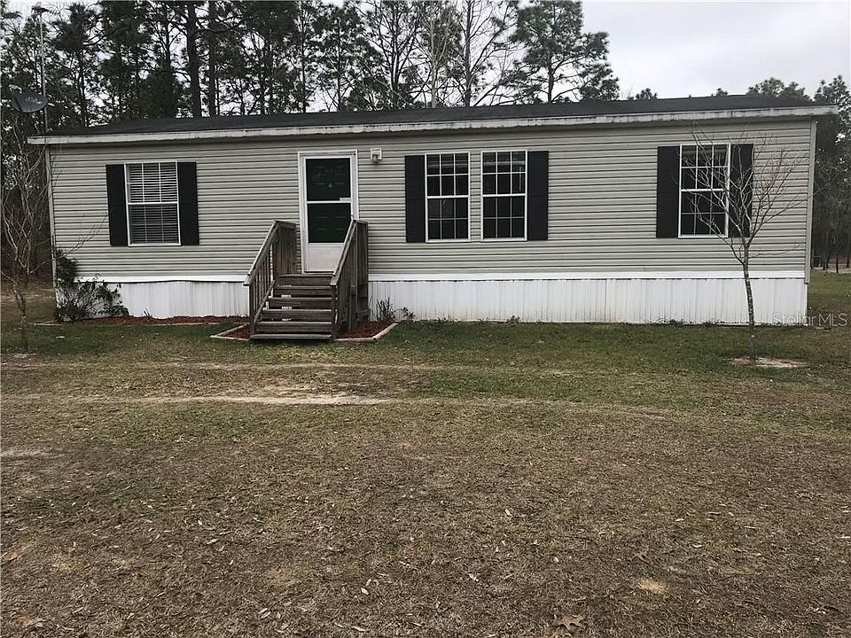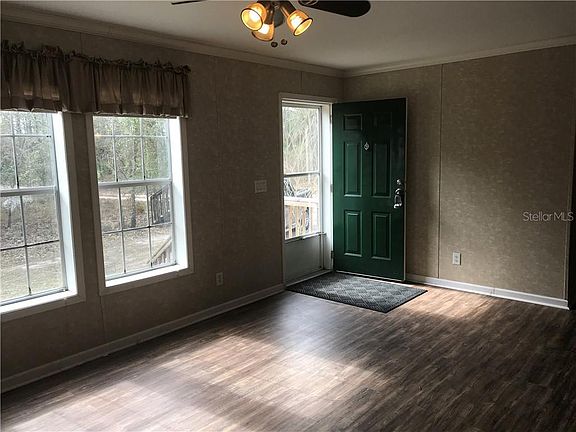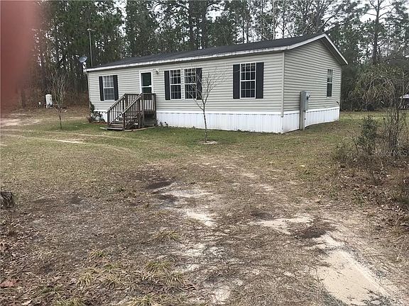 Ride to Goethe from your property. Riding trails adjoin your five and a half acre farm. There is a fenced paddock for your horse, a fenced dog run and room to build a barn. Conveniently located less than a half mile from paved roads, approximately 20 minutes from the beautiful Rainbow River in Dunnellon and shopping/dining in the quaint town of Williston. Underground electric from road to house. The three bedroom two bath home hosts laminate floors throughout and has a kitchen designed with the cook in mind with ample counter space and a pantry. Retire after a day of riding to the master retreat with spa bath that offers a large soaking tub and walk in shower. Two roomy guest rooms complete the property.