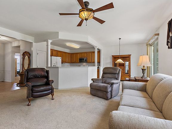 POPULAR FOX MODEL BACKING TO BEAUTIFUL GREEN SPACE ~ 3 BEDROOM, 3 FULL BATH W/DEN ~ BRIGHT OPEN LAYOUT WITH PLENTY OF NATURAL LIGHT~ MASTER SUITE W/WALK-IN CLOSET ~ DOUBLE VANITY ~ SPACIOUS WALK-IN SHOWER ~ PRIVATE DEN ~ 1ST FLOOR LAUNDRY LOCATED OFF THE 2 CAR GARAGE W/ENERGY PACKAGE & PULL DOWN STAIRS ~ PARTIALLY FINISHED BASEMENT FEATURES KITCHENETTE ~ 3RD BEDROOM & FULL BATH ~ PLENTY OF ROOM FOR STORAGE TOO ~ PROFESSIONALLY LANDSCAPED PRIVATE YARD ~ ENJOY RESORT STYLE LIVING AND ALL THE AMENITIES THIS 55 & BETTER COMMUNITY HAS TO OFFER! HOME IS BEING SOLD AS IS.
