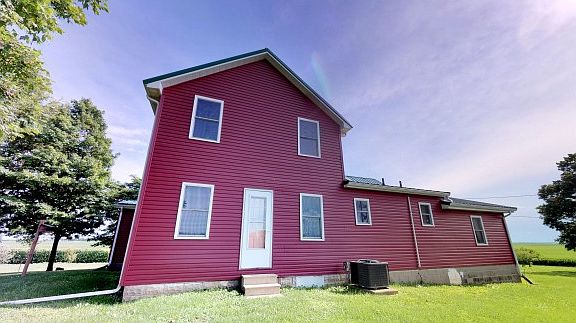 If you want privacy, this is it! Sturdy old Farmhouse has been gutted to the studs, insulated, drywalled, with replacement windows, metal roof, new siding, Pretty Amish kitchen!Seller believes Central Air to be 5 years. Nice workshop in basement. Seller has added a room to the back of the attached garage, but will remove if buyer desires. There is a nice 35 X 75 pole building with power, another old barn, storage shed and pump house for more storage. Nice fruit trees on property. House still needs some finish work, i.e flooring upstairs, sellers are moving out of state and do not have time to complete. Wall immediately to left of front door may easily be removed.Cerro Gordo address and schools, Macon County. Seller uses well in basement, outside well needs pump. Central air does not serve 2nd floor. seller used baseboard heat.