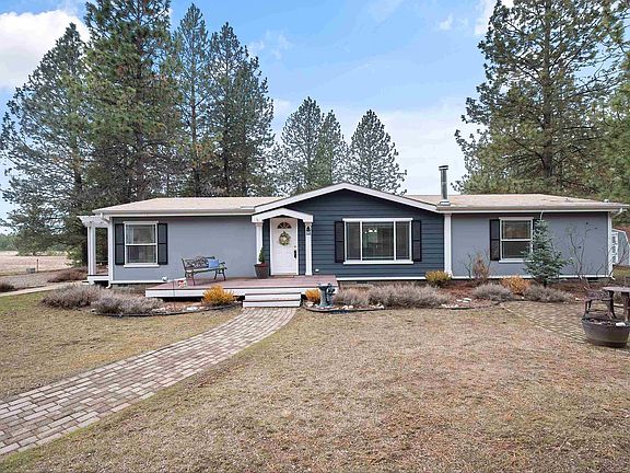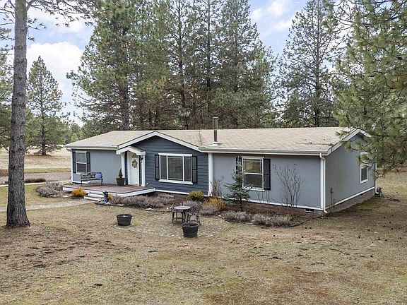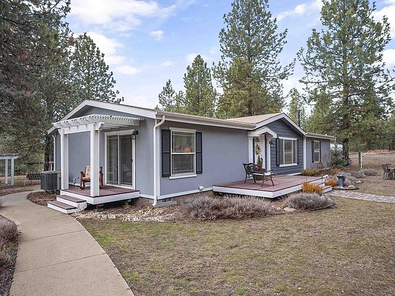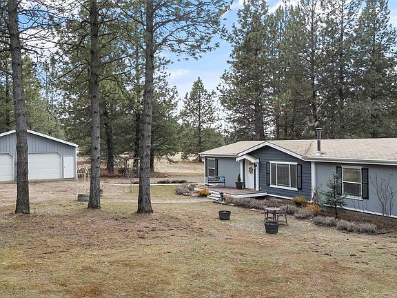 Discover serene living on 20.46 wooded acres in this energy-efficient 3-bed, 2-bath home. The 1,620 sq ft residence boasts new bedroom carpets and 3 walk in closets. The primary suite is equipped with a jetted garden tub, dual-headed shower, double sinks, and private deck access. The beautiful kitchen has stainless appliances, plentiful cabinetry, built in China cabinets and walk-in pantry. The property features a substantial 30x30 insulated shop, two 10x20 garden sheds, fenced garden area and dog yard with kennel. Relax on the expansive 48-foot composite deck with pergola or in the 12x16 free standing screened house while surrounded by natural beauty and panoramic views. Stay comfortable year-round with central A/C, heat pump, and cozy wood stove. Additional amenities include a security system and excellent well water. This peaceful retreat offers the perfect balance of seclusion and recreation, with abundant wildlife and thoughtful landscaping, just 25 minutes to N Spokane!