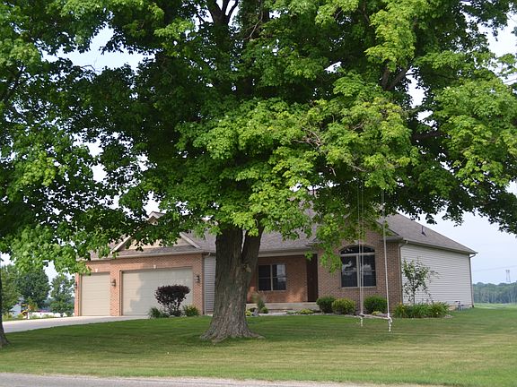Beautiful ranch home with 3 car attached garage on 1.02 acres nestled in the country. The home features on the main floor 2 BR with 2 full baths, laundry room, living room and dining room, large kitchen with stainless steel appliances, maple cabinets and nook. Master bedroom includes a walk in closet and a walk in shower. The basement adds and additional 900 sq ft partially finished that includes 1BR, large family area, unfinished full bath and unfinished bar/kitchen. Basement also includes 400 sq ft of storage and utility area. Home has an additional feature of a great storm shelter and/or storage room underneath the cement porch. Home also has 9' ceilings throughout.