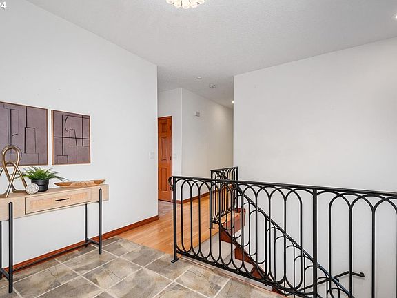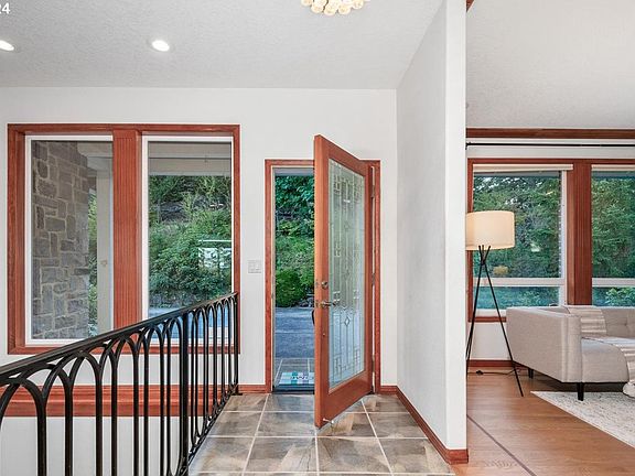 This stunning custom home with epic views of Mt. Hood is surrounded by nature, making it feel like a private, serene retreat. The beautiful hardwood floors throughout and abundance of natural light creates a warm and inviting atmosphere, enhanced by the gorgeous stone gas fireplaces in both the living and family rooms. The spacious kitchen, complete with cherry cabinetry, a breakfast island, and an eating nook, is perfect for both cooking and entertaining. The primary suite features Mount Hood views from both the bedroom and ensuite bathroom with a sliding glass door that opens to the expansive deck, offering a perfect spot to enjoy the scenery. Downstairs, there is an generous family room and four bedrooms, providing plenty of space for family or guests. The home also includes a three-car garage, ideal for multiple vehicles or additional storage. Additional features included central vacuum and AC. For those who love gardening, this property is a dream come true, featuring fig, persimmon and other fruit trees, perennials, a meditation pond, and a Koi pond. A beautiful pergola draped with wisteria adds a charming touch to the garden, making it a true delight for nature lovers.