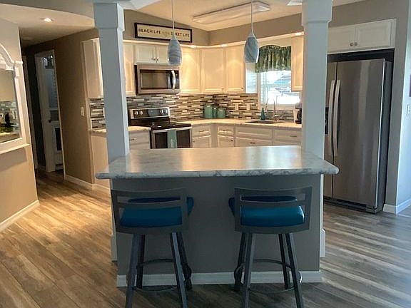 New roof, new air conditioning, new windows, new appliances, new water softener, new ceiling fans, new remodel.Lot rent includes pool, lawn care, sewer, trash. $305. a month