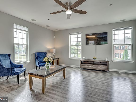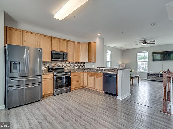 Beautiful three-level townhome with a brick front and side, featuring a maintenance-free vinyl deck and 6' vinyl fence in backyard. The entrance level offers a home office with French doors, a large open recreation room, and a gym or media room with a walkout to the backyard. The main level boasts a spacious open floor plan with 9-foot ceilings, a living room, and an eat-in kitchen with a breakfast bar for two. The kitchen is equipped with modern appliances, including a refrigerator with water and ice, stove, built-in microwave, dishwasher, stainless steel sink, garbage disposal, and exhaust fan, complemented by a designer glass tile backsplash and a pantry. A sliding glass door leads to the large vinyl deck. The living room includes built-in speakers for a surround sound system and a half bath. The upper level features three bedrooms and two full baths, with a laundry closet housing a full-size washer and dryer, only two years old. The owner's suite includes a walk-in closet and a private full bath. The Field Side subdivision offers amenities such as a clubhouse, playgrounds, and walking/biking trails. Conveniently located one block from the Blue Crabs baseball stadium and Saint Charles High School.